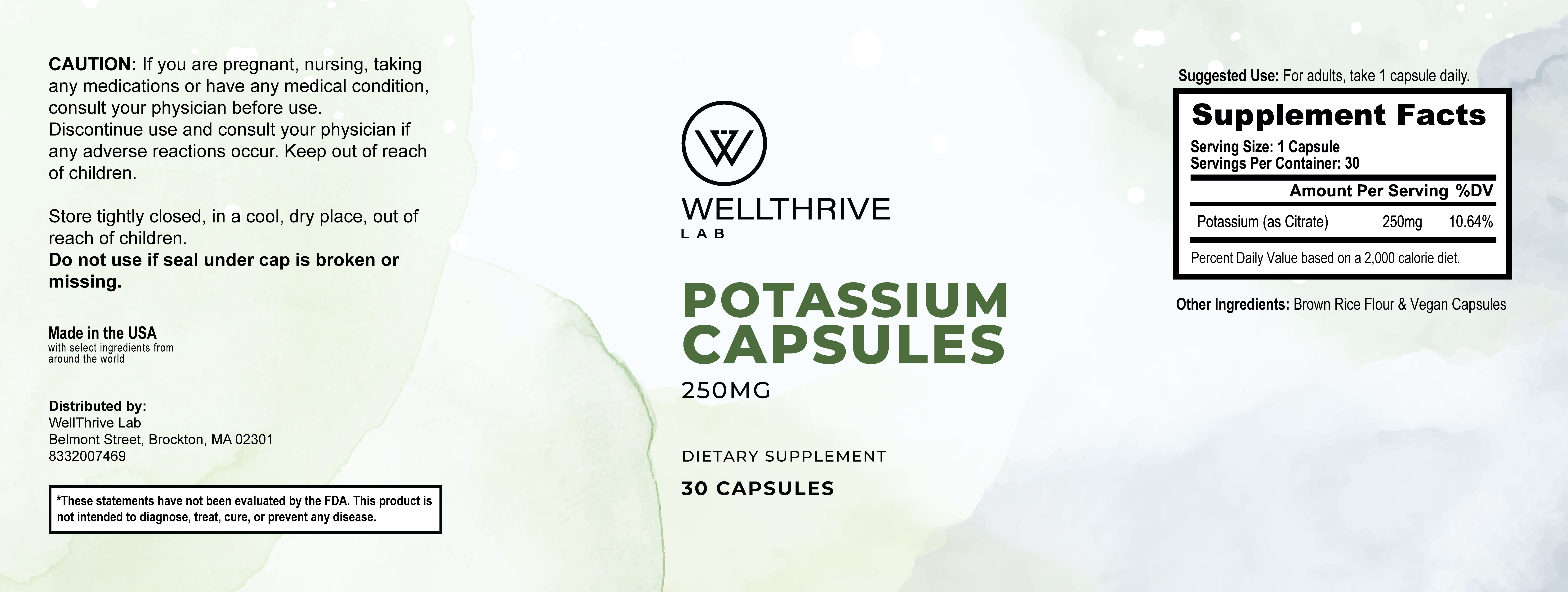 Potassium is an essential mineral that helps your body maintain healthy hydration, muscle function, and overall balance. Our Potassium Capsules provide 250 mg per serving in an easy-to-take format designed to fit naturally into your daily routine.